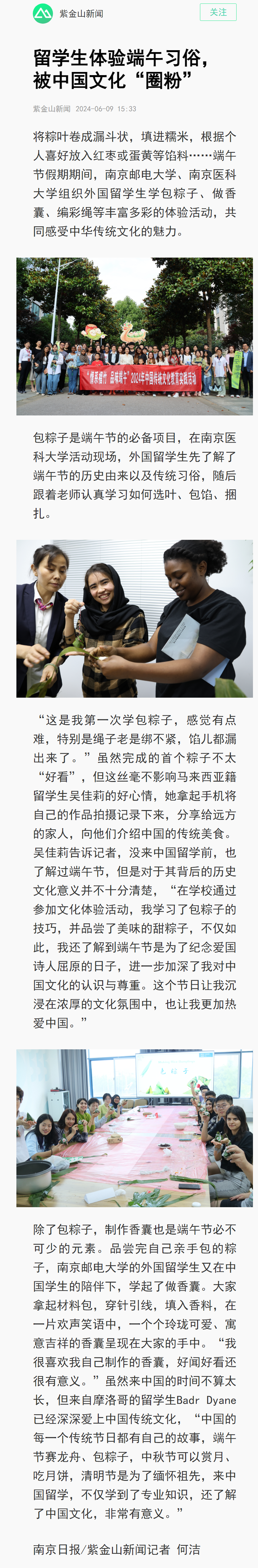 | 【南京日報客戶端】留學(xué)生體驗端午習(xí)俗,被中國文化“圈粉” |