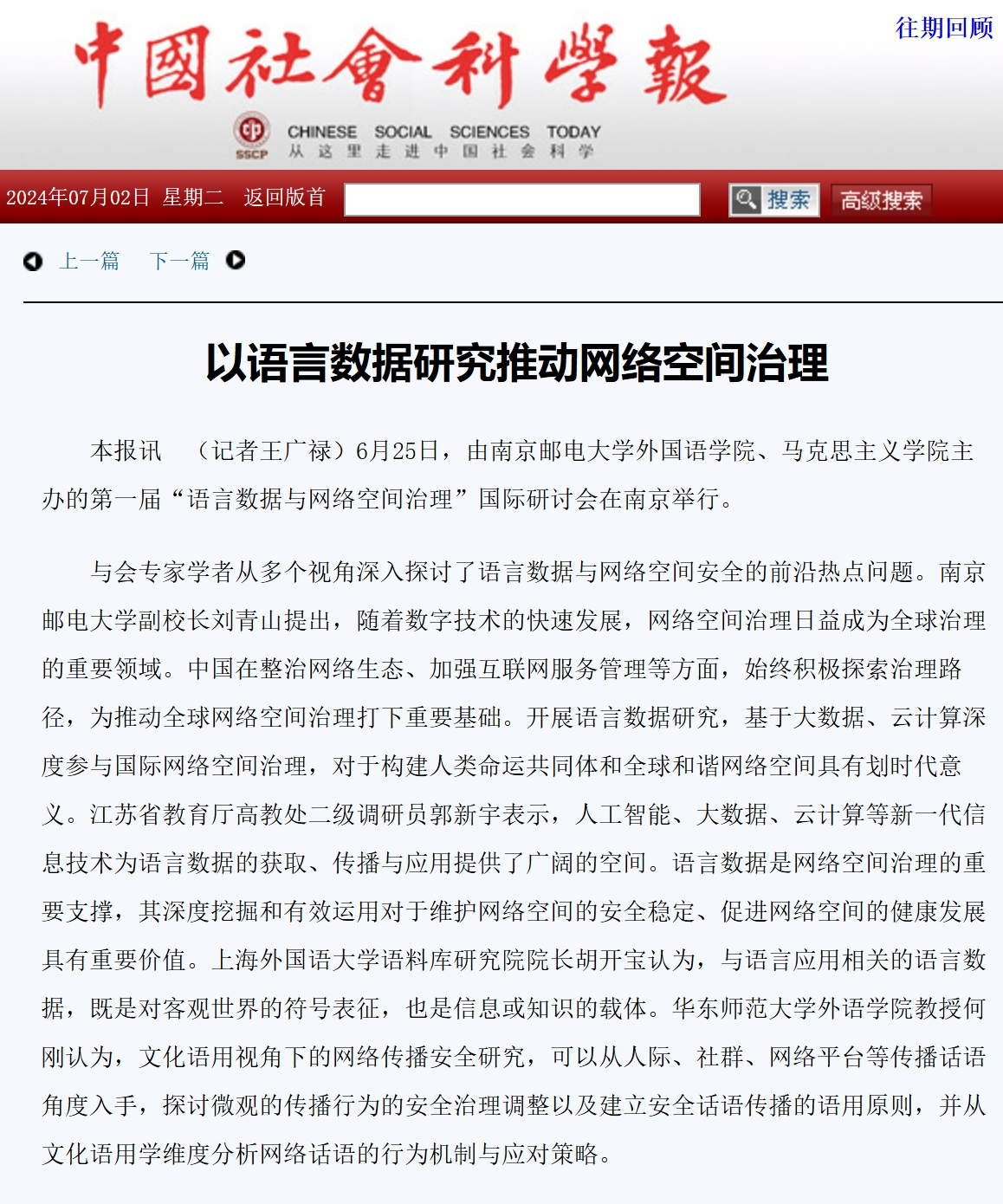 【中國(guó)社會(huì)科學(xué)報(bào)】以語(yǔ)言數(shù)據(jù)研究推動(dòng)網(wǎng)絡(luò)空間治理