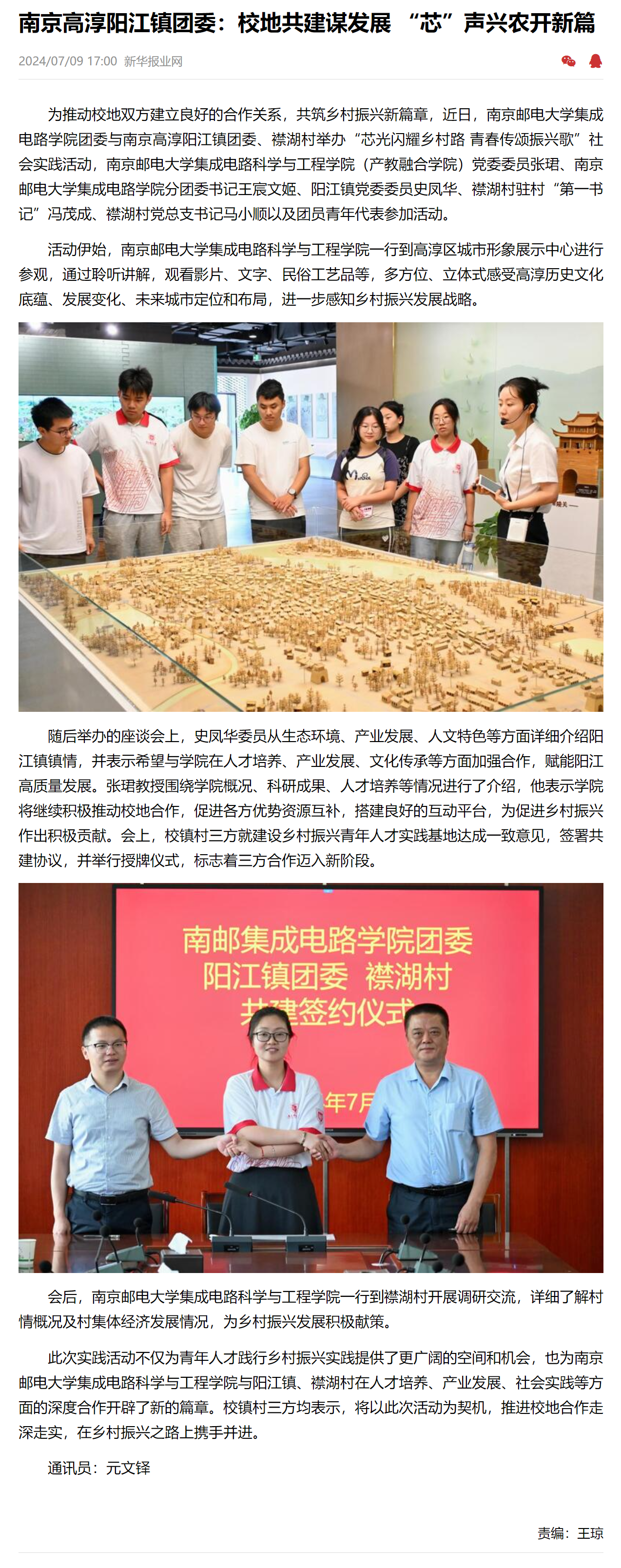 【新華報業(yè)網(wǎng)】南京高淳陽江鎮(zhèn)團委:校地共建謀發(fā)展 “芯”聲興農(nóng)開新篇