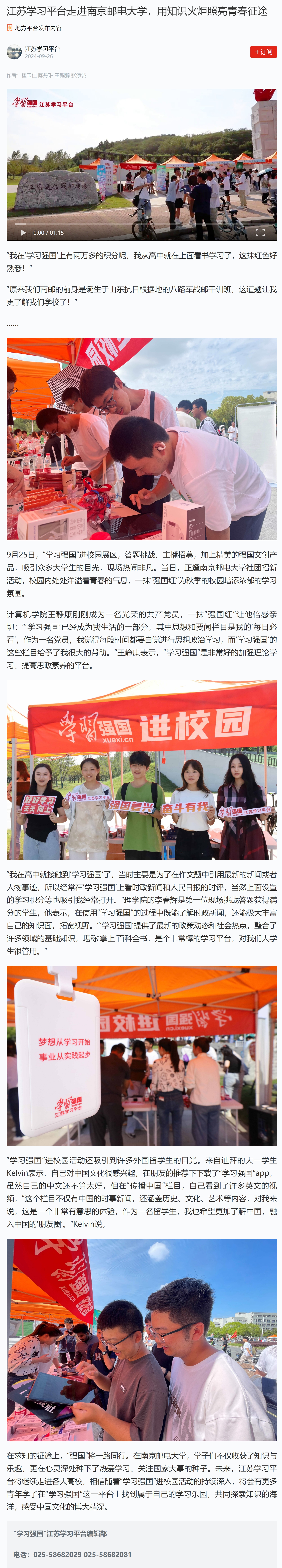 【學習強國】江蘇學習平臺走進南京郵電大學,用知識火炬照亮青春征途