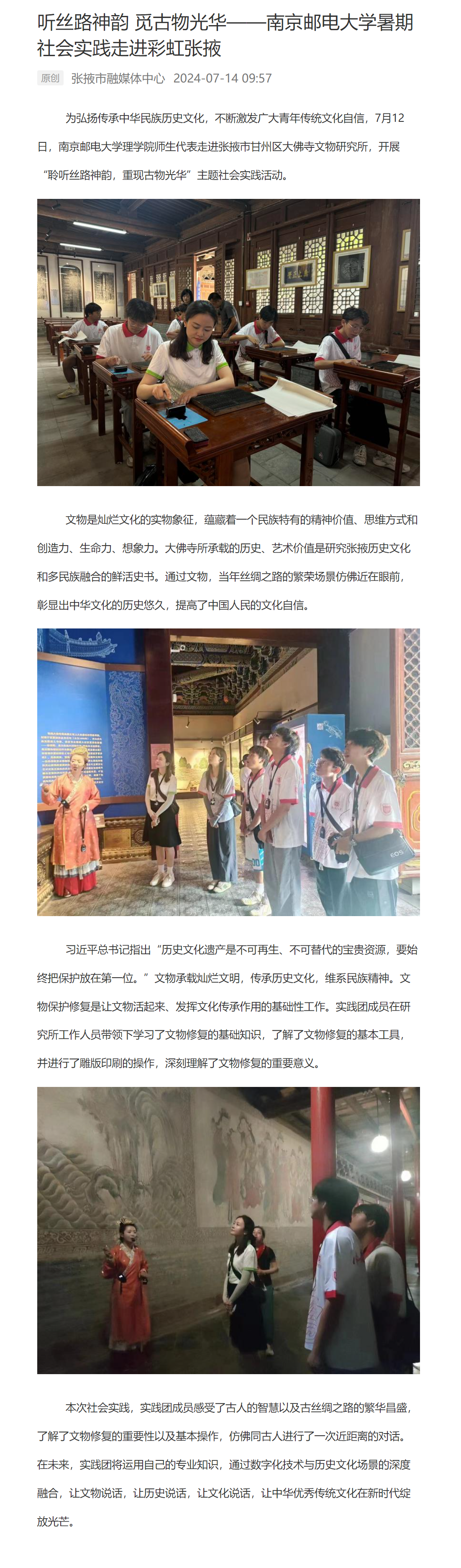 | 【張掖市融媒體中心】聽絲路神韻 覓古物光華——南京郵電大學(xué)暑期社會(huì)實(shí)踐走進(jìn)彩虹張掖 |