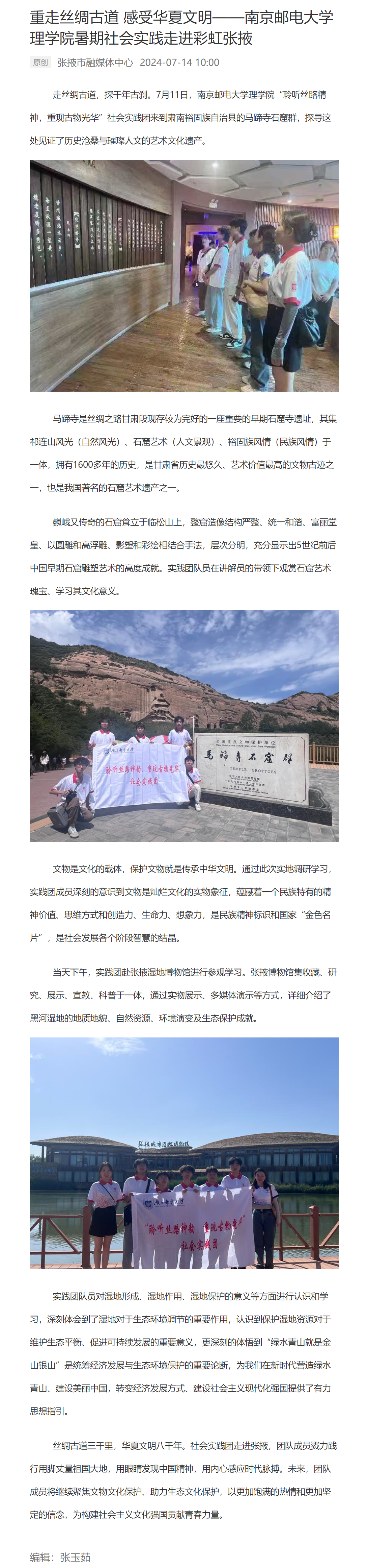 【張掖市融媒體中心】重走絲綢古道 感受華夏文明——南京郵電大學理學院暑期社會實踐走進彩虹張掖