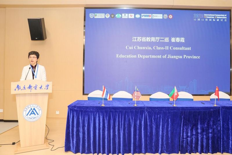 4月11日,南郵承辦的“12國12校國際研討會(huì)”在仙林校區(qū)柔性電子全國重點(diǎn)實(shí)驗(yàn)室報(bào)告廳舉行。江蘇省人民政府外事辦公室黨組成員、江蘇省對(duì)外友好協(xié)會(huì)副會(huì)長錢文華,江蘇省教育廳二級(jí)巡視員崔春霞,我校黨委書記郭宇鋒、校長葉美蘭出席會(huì)議并致辭。“四郵四電”兄弟高校作為特邀嘉賓參會(huì),來自泰國、馬來西亞、菲律賓、俄羅斯、白俄羅斯等12國12校的校長及代表參加研討會(huì)。校黨委常委、副校長劉青山主持會(huì)議。
