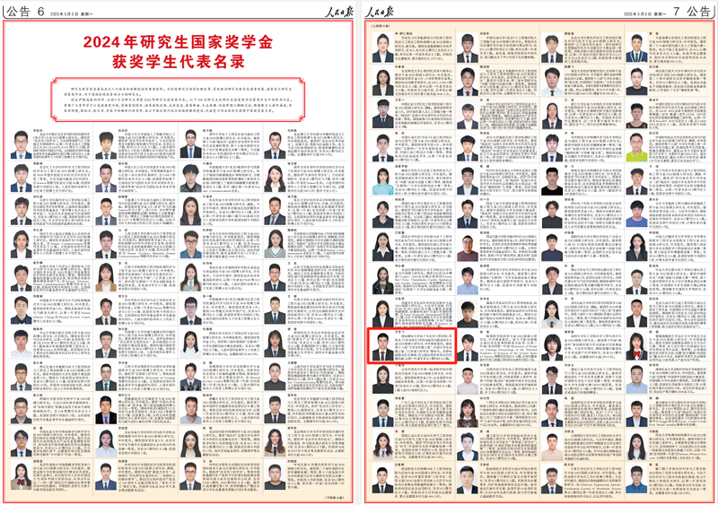 5月5日,《人民日報》公布2024年研究生國家獎學金獲獎學生代表名錄,南京郵電大學電子與光學工程學院、柔性電子(未來技術)學院2022級電磁場與微波技術專業碩士研究生萬寶飛作為江蘇省屬高校唯一獲獎研究生代表入選,這也是學校研究生首次榮登該名錄。