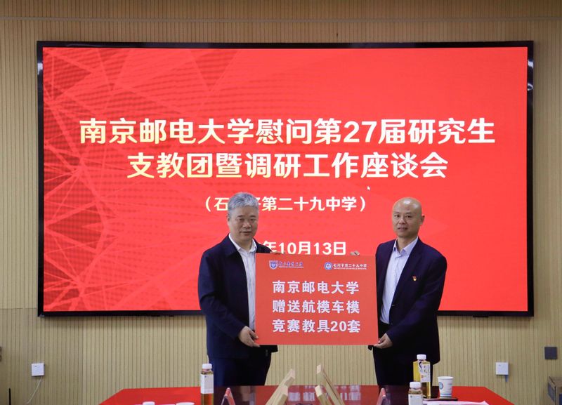 座談會現(xiàn)場 郭宇鋒向兵團八師石河子市及有關部門、總場第一小學和第二十九中學表達誠摯感謝。他說,戰(zhàn)郵精神與兵團精神的“紅色共鳴”,成為校地合作的獨特紐帶。組織開展研究生支教團工作既是南郵落實立德樹人根本任務的重要舉措,也是校地攜手培養(yǎng)時代新人的有效路徑。他充分肯定研支團志愿者的支教志愿服務工作,并提出三點希望:一要厚植家國情懷,涵養(yǎng)高尚品德,將個人理想融入黨和國家事業(yè),以“風物長宜放眼量”的格局為中華民族偉大復興的中國夢,貢獻自己的力量;二要勇?lián)鈽s使命,獻身支教事業(yè),把支教工作作為人生重要的鍛煉和成長機會,為成為全面發(fā)展的社會主義建設者和接班人奠定堅實基礎;三要心懷遠大志向,追逐青春夢想,在奮斗中把小我融入到祖國的大我、人民的大我之中,同人民一道拼搏,同祖國一道前進,服務人民,奉獻祖國,更好地實現(xiàn)人生價值。 張智鵬代表師市黨委向南郵六年來持續(xù)選派優(yōu)秀學子支援師市教育事業(yè)表示誠摯感謝。他表示,石河子作為一座承載光榮紅色傳統(tǒng)與深厚軍墾底蘊的城市,離不開一代又一代建設者的接續(xù)奮斗,南郵作為擁有深厚紅色基因的高等學府,自2020年起向師市選派24名志愿者,秉持“厚德、弘毅、求是、篤行”的校訓,將先進的教育理念、飽滿的青春熱情與深厚的育人關懷注入校園,為師市教育事業(yè)高質量發(fā)展提供了有力支撐。 總場第一小學、第二十九中學感謝南郵對學校發(fā)展的持續(xù)支持。雙方還就中小學科普、大中小美育一體化和中小學社團建設等未來進一步的校地合作進行了深入交流,為有序推進雙方交流合作拓展新的增長空間。 座談會上,南郵向二十九中贈送航模車模競賽教具20套,向總場一小贈送國旗班訓練教具、美育課教學教具各20套。