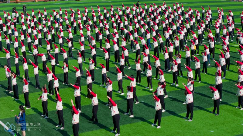 開(kāi)幕式表演環(huán)節(jié)精彩不斷。由校工會(huì)策劃的教職工《第九套廣播體操》表演,展現(xiàn)出教師們健康活力、積極向上的精神面貌。創(chuàng)意龍獅表演《紀(jì)念抗戰(zhàn)勝利80周年——正義必勝》以氣勢(shì)恢宏的藝術(shù)語(yǔ)言,生動(dòng)再現(xiàn)了中華民族在抗日戰(zhàn)爭(zhēng)中的英勇歷程與不屈精神,演出在“正義必勝、和平必勝、人民必勝”的集體高呼中達(dá)到情感頂峰。由大二年級(jí)640名女生帶來(lái)的大型團(tuán)體操《解碼青春》,通過(guò)不斷變換隊(duì)形與畫(huà)板色彩,依次呈現(xiàn)出南郵紅綠藍(lán)特色元素,傳遞了“愛(ài)運(yùn)動(dòng)、郵未來(lái)”的精神內(nèi)涵。