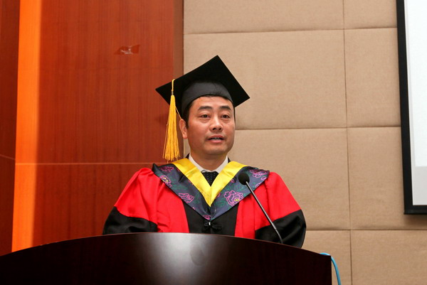 NJUPT President Professor Yang Zhen delivered the speech. He extended heartfelt congratulations, on behalf of the university, to all the graduate students who have satisfactorily completed their studies and been conferred Master’s degree. He pointed out that cultivating full-time international students was a significant breakthrough in our attempt to be in line with the internationalization, that the successful graduation of the students should owe to continuous efforts paid by everyone in NJUPT. Next Professor Yang congratulated students on their growth and success achieved in the university. During those 2 years, he addressed, that they had completely integrated into college life here and became a real NJUPTER, and graduates would change from students in NJUPT to alumni of NJUPT. He expressed his wishes of the graduates’ bearing in mind the school motto morality, persistence, practicality and sincerity wherever they are and becoming the synonym of NJUPT’s internationalization as well as the envoy of international cultural exchange, who devote themselves to getting more and more people know about China and NJUPT.