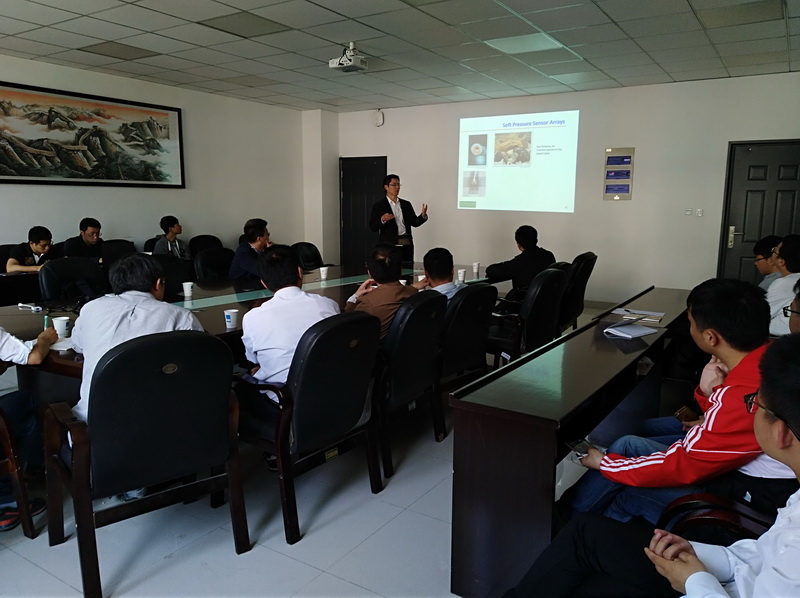 Prof. Tan Xiaobo delivered the latest research progress of the Intelligent Micro System Laboratory at Michigan State University in software robots, flexible array sensors and biomimetic robotic fishes. He elaborated on a method for the optimization and order reduction of hysteresis operator, which prevents large amounts of calculation of the classical nonlinear hysteresis model. After the lecture, Prof. Tan had a forum with teachers of the School of Automation. In the afternoon, he discussed about design and analysis of software robots and study on structural stability together with teachers and students from the Jiangsu IOT Intelligent Robot engineering Laboratory in aseminar.