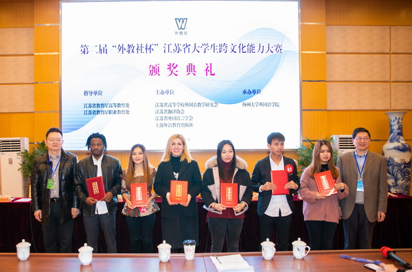 On November 20th, the second “Waijiaoshe Cup” Intercultural Communicative Competition of Jiangsu Universities was held in Yangzhou University, co-sponsored by the Jiangsu Provincial Higher Education Foreign Language Teaching Research Association, Jiangsu Provincial Translation Association, Jiangsu Foreign Languages Association and Shanghai Foreign Language Education Press. After a fierce rematch and finals, Solo Davlatova, one senior student majored in Business Administration from Tajikistan, instructed by teacher Liu Juanjuan, was awarded the first prize of the International Student Group.