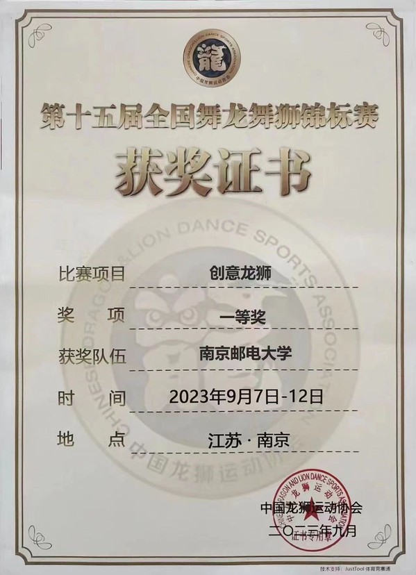 NJUPT won the first prize in National Creative Dragon and Lion Project. The picture shows the award certificate.